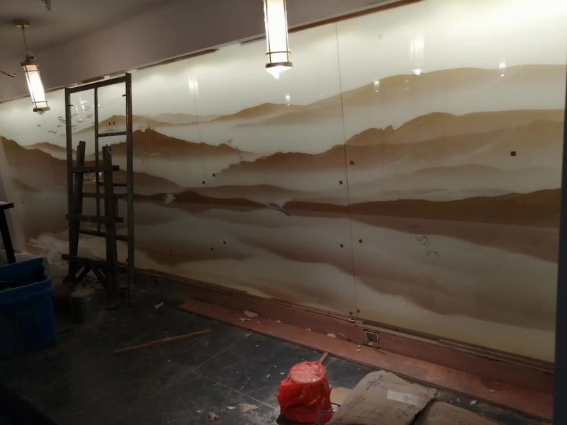 山水画夹胶玻璃安装中
